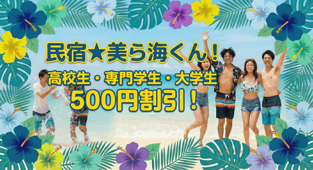民宿★美ら海くん!に2泊以上する方限定でお車をシェアしております。24時間1500円(保険必須 他者搭乗特約可)